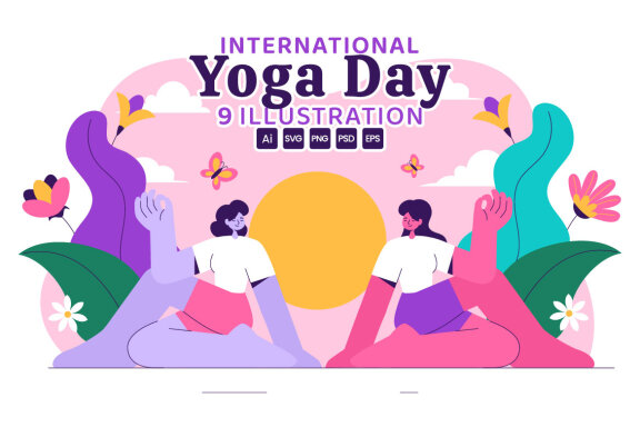 International Yoga Day Vector Illustration on June 21, featuring a Woman Practicing Yoga Poses or Meditation in a Flat Style Healthcare Background Suitable for Poster, Web Banner, Brochure, Landing Page and Others Background Template Features:
