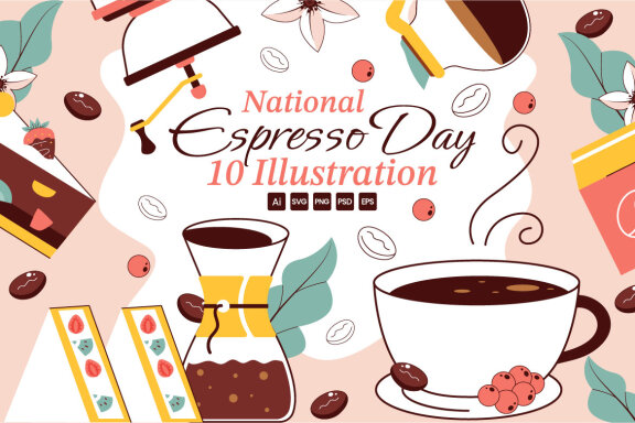 National Espresso Day Celebration Vector Illustration on November 23 Featuring a Coffee Cup and Coffee Beans in a Flat Style Cartoon Background Suitable for Poster, Web Banner, Brochure, Landing Page and Others Background Template Features:
