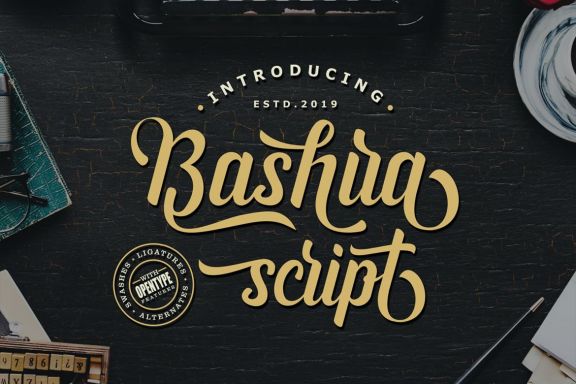 Bashira is an amazingly authentic script font with distinctive characters! Bashira has Stylistic Alternates, Swashes and Ligatures. And you must use a program that already supports the open type like Adobe Illustrator, Adobe InDesign, and CorelDraw X6-X7.
