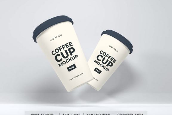 Graphic templates of Realistic Paper Coffee Cup Mockup in Photoshop format. Editable colors, organized layers & easy to use smart objects. Use this on your next design project with ease.