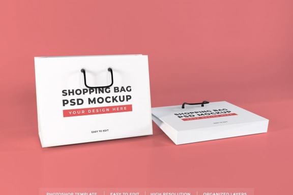 Graphic templates of Realistic Shopping Bag Mockup Template in Photoshop format. Editable colors, organized layers & easy to use smart objects. Use this on your next design project with ease.
