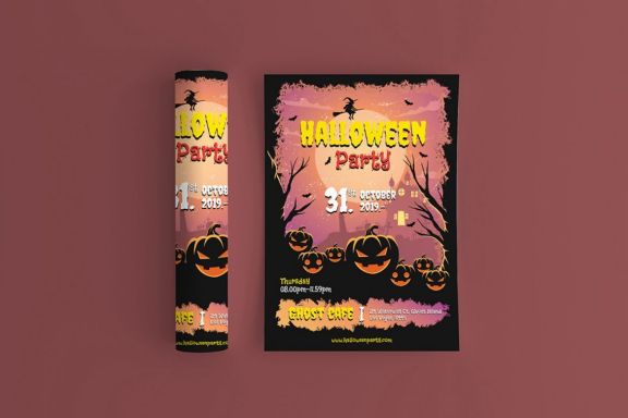 A4 Halloween Flyer template in fully editable in Adobe illustrator, Photoshop, and Eps Version