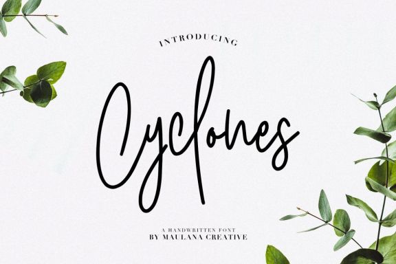 Give your designs an authentic handcrafted feel. "Cyclones" is perfectly suited to signature, stationery, logo, typography quotes, magazine or book cover, website header, clothing, branding, packaging design and more.
