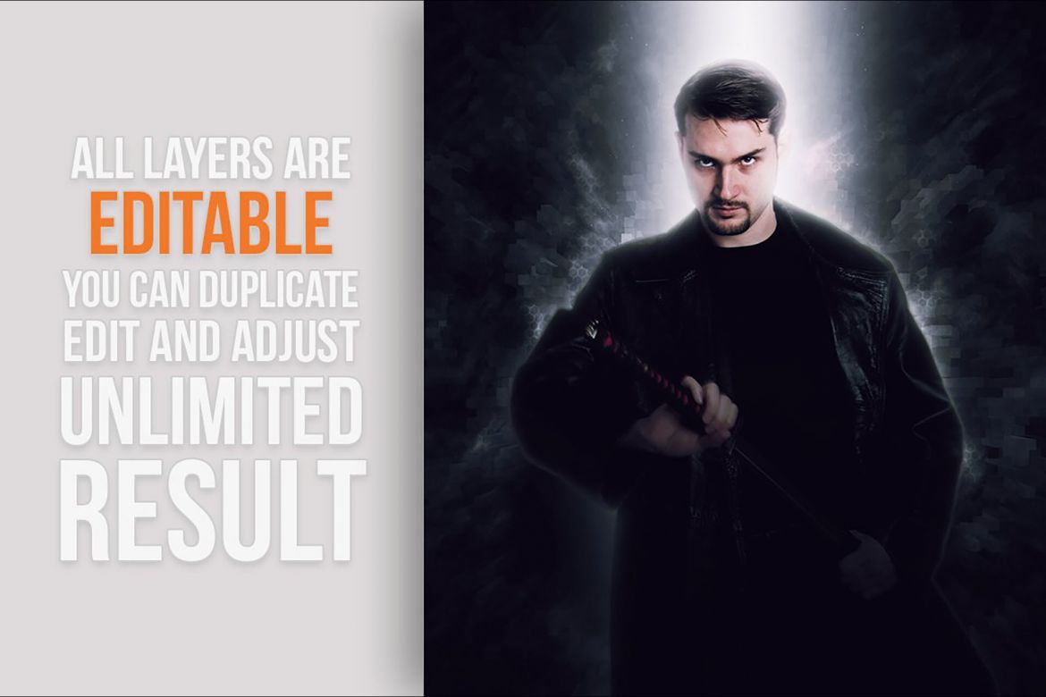Add special effects into your photo instantly using Portalz Photoshop Action. This action will create lots more elements that can be edited manually. After this action finished you can set opacity of layer, set properties, duplicate, move etc.