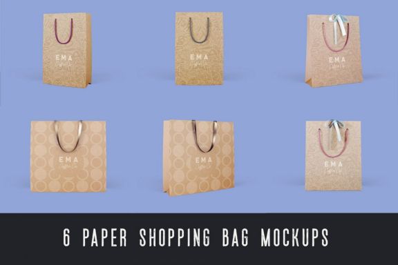 6 Paper Shopping Bags - Packaging Mockups for Adobe Photoshop CS3 or Newer!