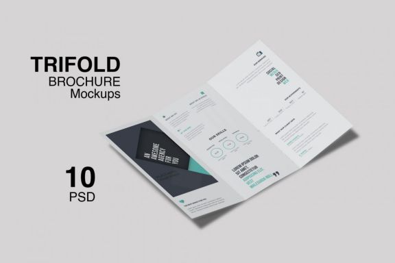 10 different Trifold Brochures Mock-ups to showcase your trifold design, menu or promotion realistic looking. These mock-up files use smart object feature which help you to change the design just in few seconds.