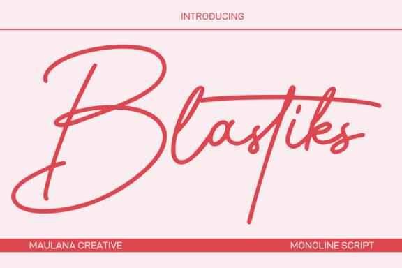 Blastiks is am expressive casual signature script font. With slanted mono-line stroke, fun character with some of ligatures. To give you an extra creative work. Blastiks font support multilingual more than 100+ language. This font is good for logo design, Social media, Movie Titles, Books Titles, a short text even a long text letter and good for your secondary text font with sans or serif. Make a stunning work with Blastiks font.