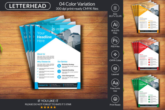 Features: • Easy customizable and editable. • 100% Layered and Full Editable. • 04 PSD Files, 04 AI files & 04 EPS files. • Optimized for printing / 300 Dpi. • CMYK color mode. • 04 Color Variation. • A4 size (8.27×11.69 inch dimension.) • 0.25 Bleed. • Free Font. • Help Guide Included. • Adobe photoshop & illustrator CC or Higher Version. • Images are not included in the download.