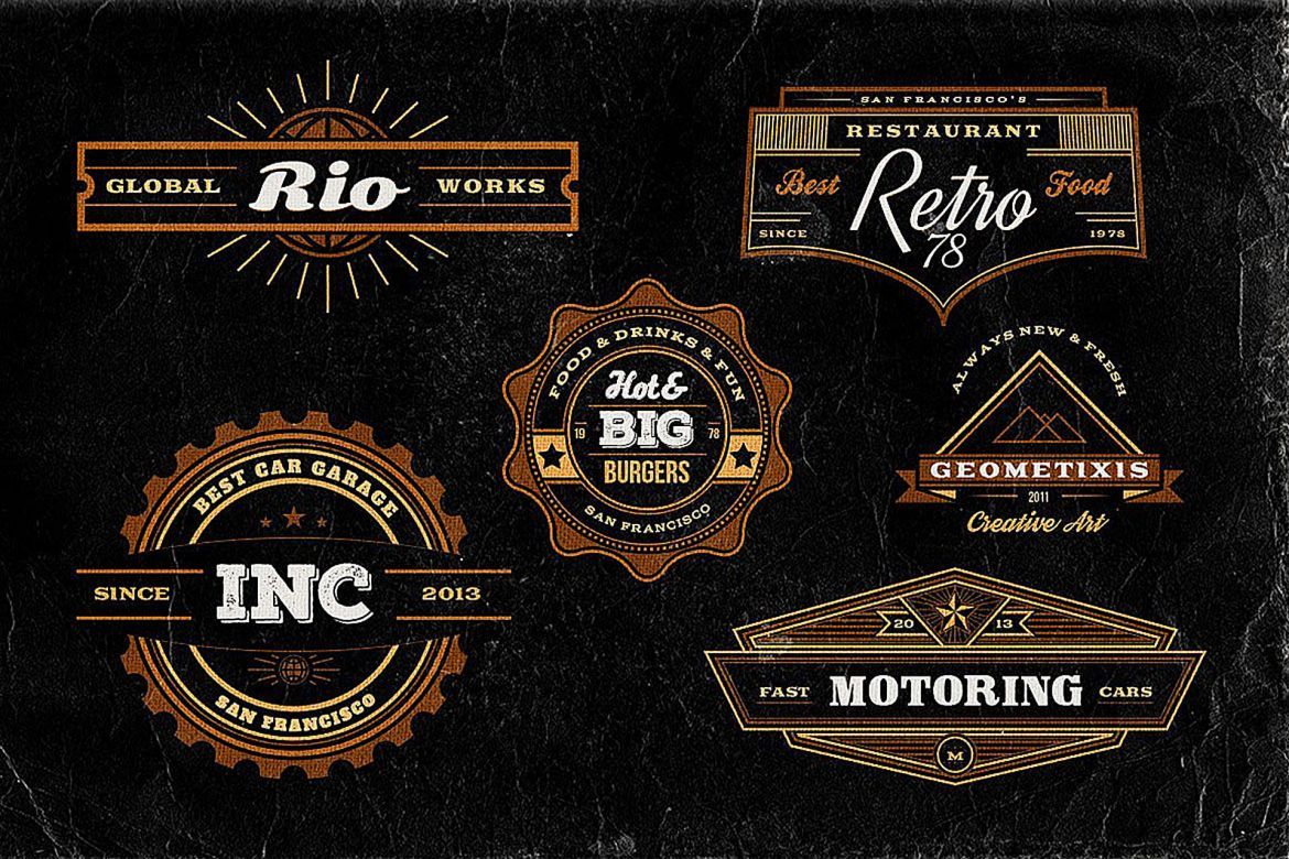 12 retro/vintage style logos/signs/badges perfect to use as logos, buttons or as promotion graphics for your website or print design. Completely editable, and fully vectored for Adobe Photoshop (resizable). Adobe Illustrator .ai and .eps files also included - but only shapes without texts! Fonts: Only free fonts. All links in the download (fonts.txt)!