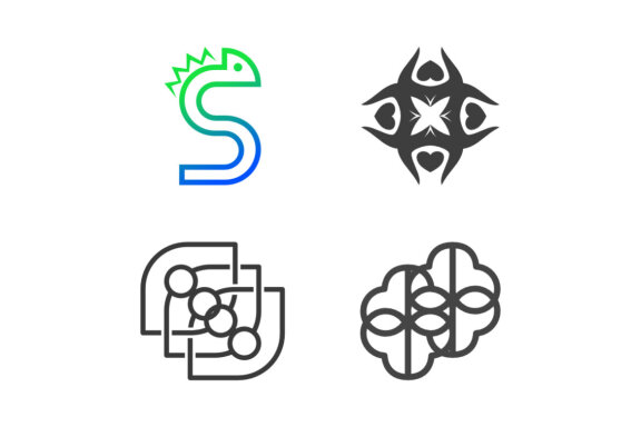 Vector consists of chameleon monogram S and love ornament. Outline and elegant.