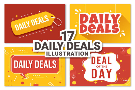 Daily Deals of The Day with Decorative Lettering Text Style for Poster, Banner, Brochure or Label in Flat Cartoon Hand Drawn Background Illustration Template Features: