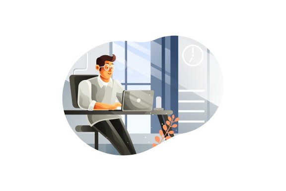 I give the name for this illustration is the illustration of Businessman working on a laptop computer at his office . A Vector Illustration with a New Cartoon Style and of course different from the others.