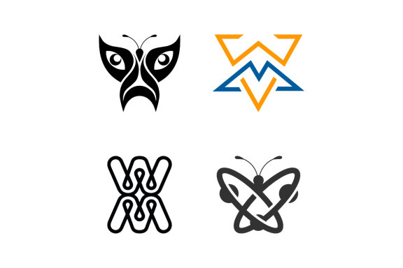 - the vector consists of a dog butterfly pictogram, an mw monogram, and an atom.