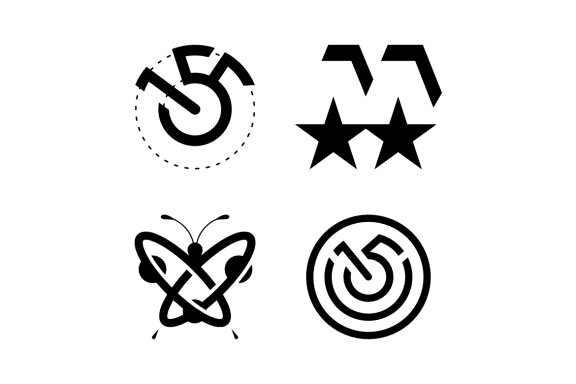 - the vector consists of 155 monograms, an m star pictogram, a butterfly atom, and a monogram of 156 rings.