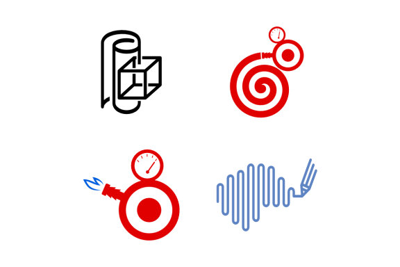 The logo consists of a monogram paper box, a regulator and a brain pen.
