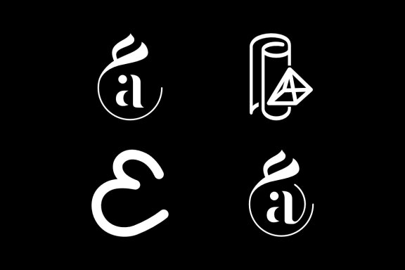 Vector consists of monogram A and arabic ain, paper and diamond, arabic ain and love.