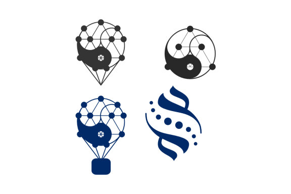 Graphic consisting of a yin yang balloon and a mosque monogram.