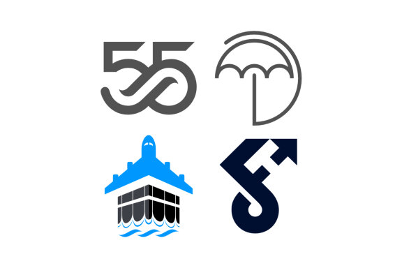 Graphic consisting of the 55D monogram of the umbrella area of the Kaaba and FH.