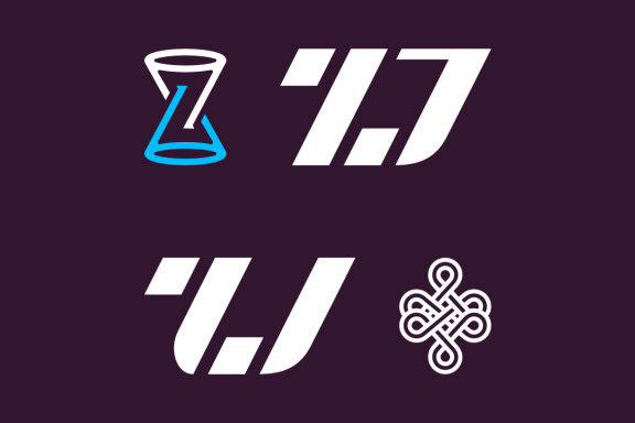 The graphics consist of the hourglass monograms ZJ and 7J.