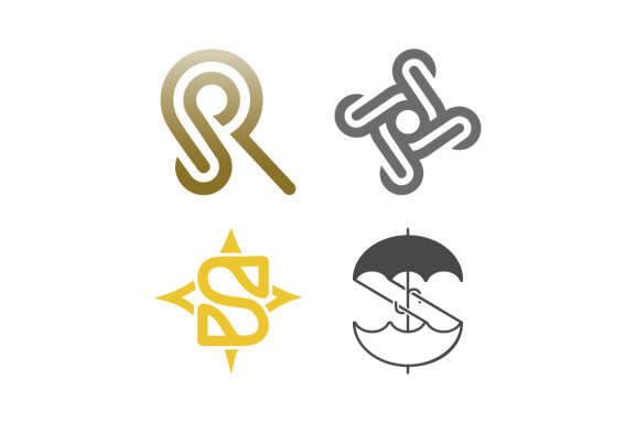 The graphic consists of the SR monogram, S star, S umbrella and ornament. Outline, unique and elegant.