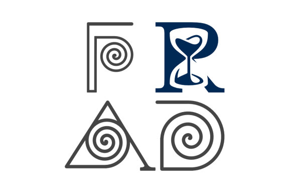 The graphic consists of monogram F spiral A spiral D spiral R hourglass. Unique and elegant.