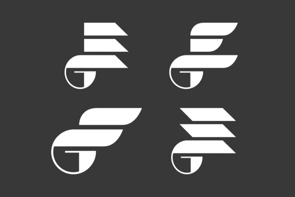 The logo is a monogram of the letters FG and EG. Stacked and unique.