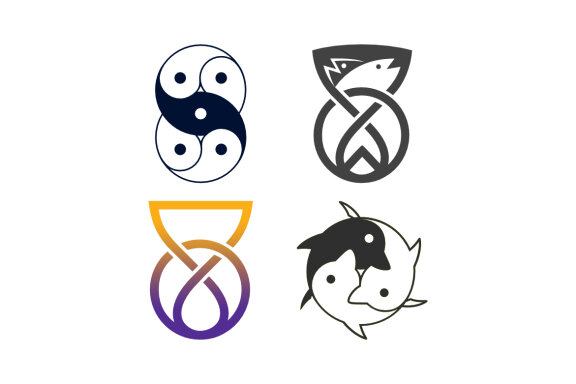 The vector consists of the 8 yin yang cup fish dolphin monogram. Unique and elegant.