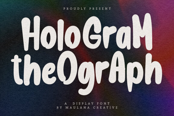 Hologram Theograph display font. With medium soft stroke, fun character with a bit of ligatures and alternates. To give you an extra creative work. Hologram Theograph display font support multilingual more than 100+ language. This font is good for logo design, Social media, Movie Titles, Books Titles, a short text even a long text letter and good for your secondary text font with script or serif. Make a stunning work with Hologram Theograph display font.