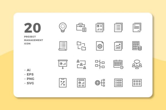 High quality collection of Project Management Icons in line, solid, and linear color style, designed carefully by our team.