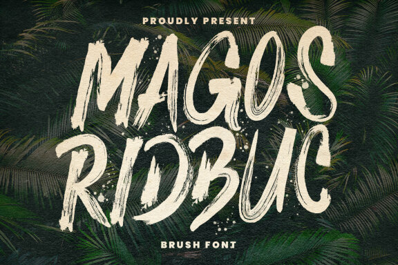 Give your designs an authentic brush handcrafted feel. "Magos Ridbuc Display Brush Font" is perfectly suited to signature, stationery, logo, typography quotes, magazine or book cover, website header, flyer, clothing, branding, packaging design and more.