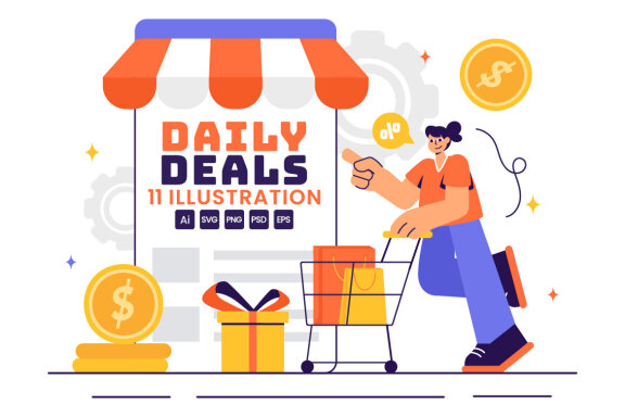 Daily Deals Vector Illustration Showcasing Various Shopping Items with Increasing Discounts to Ideal for Promotions, Sales, and E-Commerce Background Suitable for Poster, Web Banner, Brochure, Landing Page and Others Background Template Features: