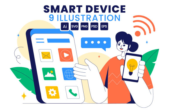 Smart Devices Vector Illustration Featuring Internet Technology Devices Connected to a Network in a Flat Style Cartoon Background Suitable for Poster, Web Banner, Brochure, Landing Page and Others Background Template Features: