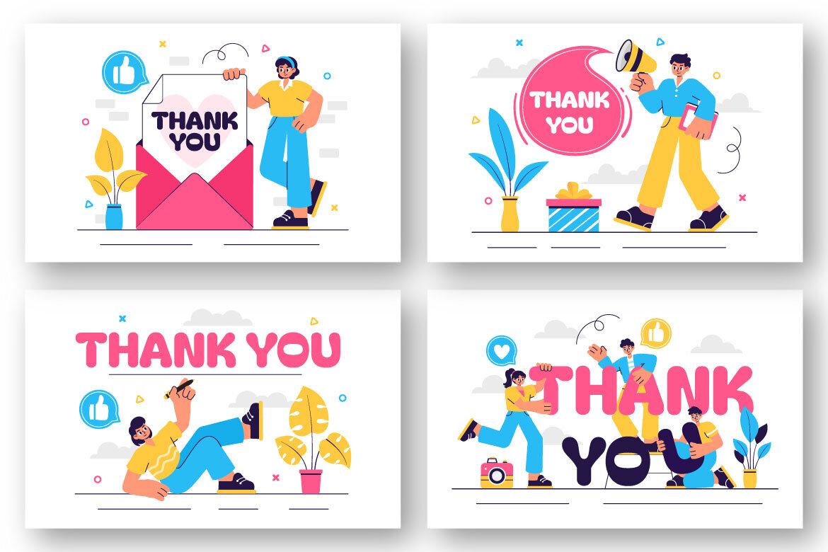 Thank You Vector Illustration Featuring a Letter in an Envelope, Perfect for Posters, Web Banners, Brochures, Landing Page and Others Background or Cards in a Flat Style Cartoon Design Template Features:
